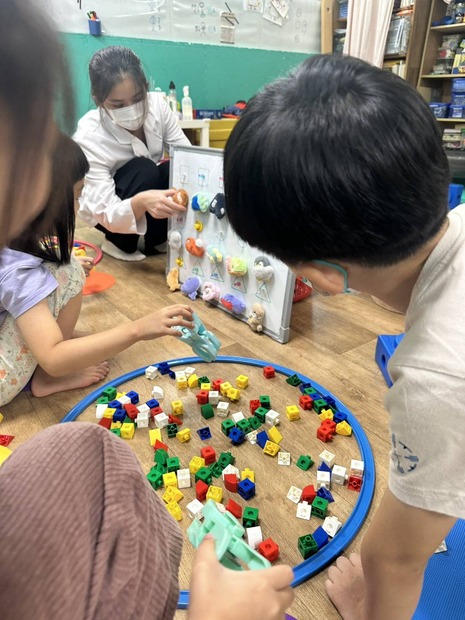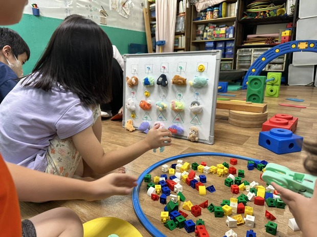 3. 一次唸出2-4個名詞,讓孩子記憶後對照積木形狀/顏色