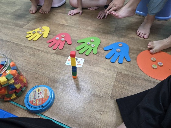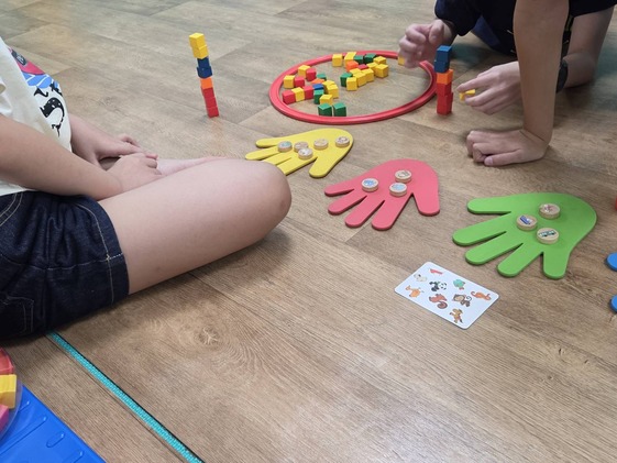 包括視覺搜尋、工作記憶及手部的穩定性、點數等能力都是這個活動會訓練到的歐~孩子可能會忘記自己數過的顏色、或知道動物命名但不會計數字數或積木一直倒塌等,家長們可以再針對孩子的個別狀況加強練習,或與治療師討論相關活動!