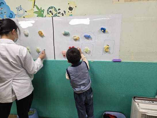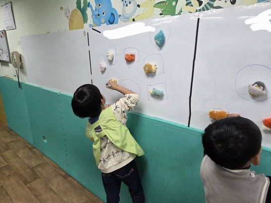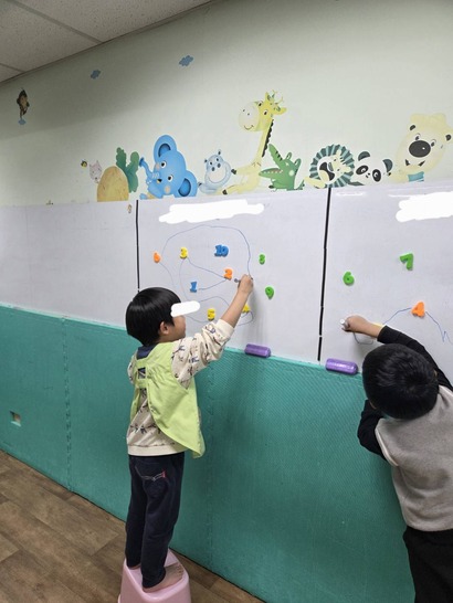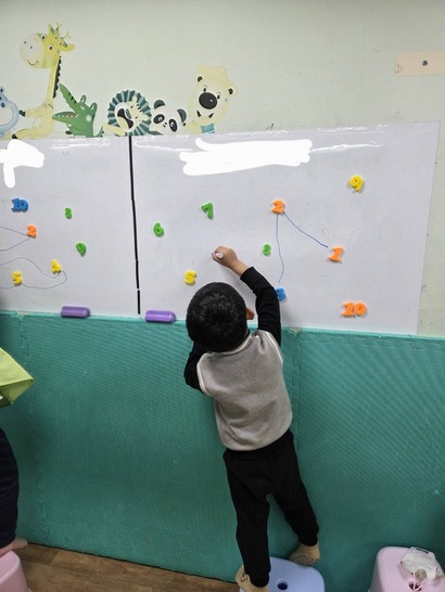 ︎在牆壁或白板等垂直平面上設立一些簡單規則(從1連到10、